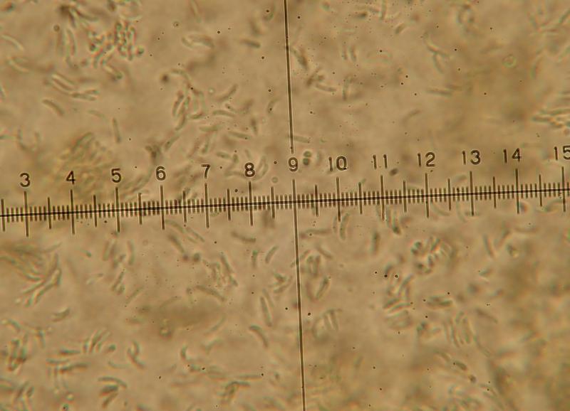 Conidiospores are 4,45 - 6,09 × 0,9 - 1,27 µm Q = (4,3) 4,34 - 6,1