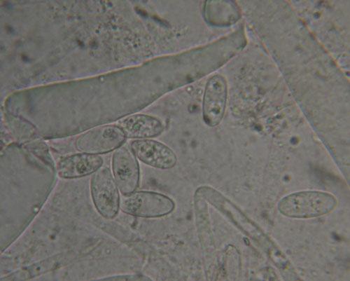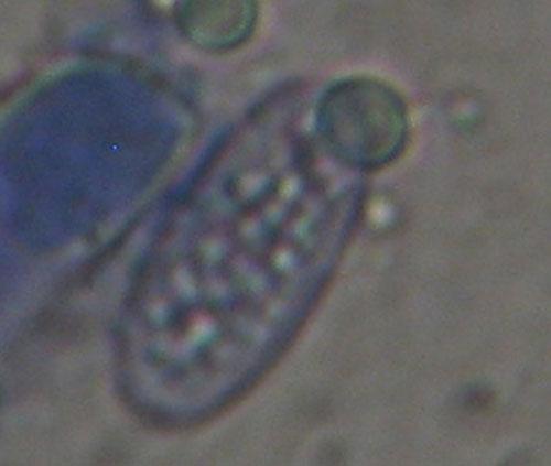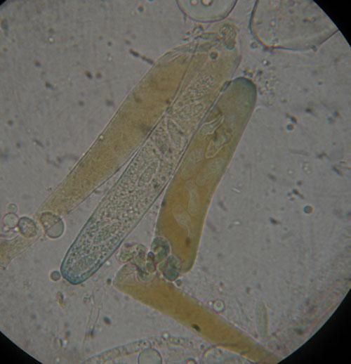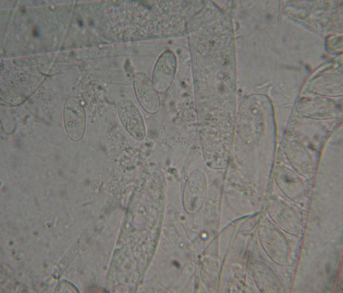 At a cemetery where pine trees used to be, we found some of these Peziza. They grew between gravel on sand. There were also planks close to the path and a few grew with manure from sheep. the asci are 283 - 340 x 18 m? Paraphyses 175 x 5 m?. The spores are 14 - 17 x 6-7 m?. I think they are somewhat warty. With Melzer J +