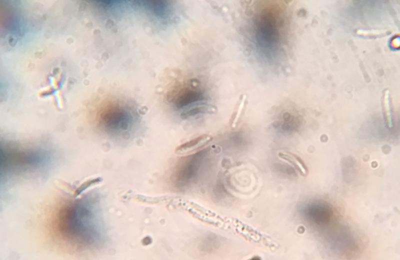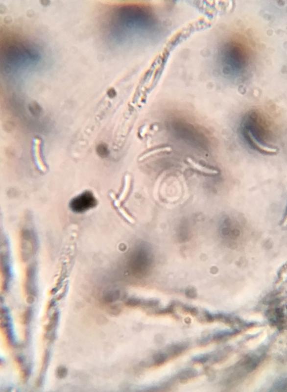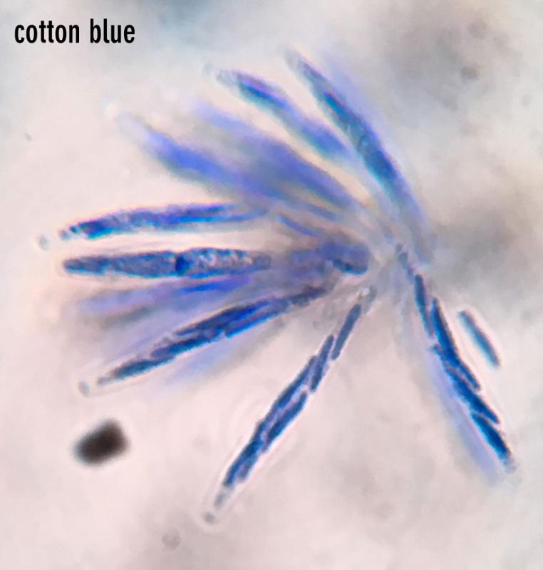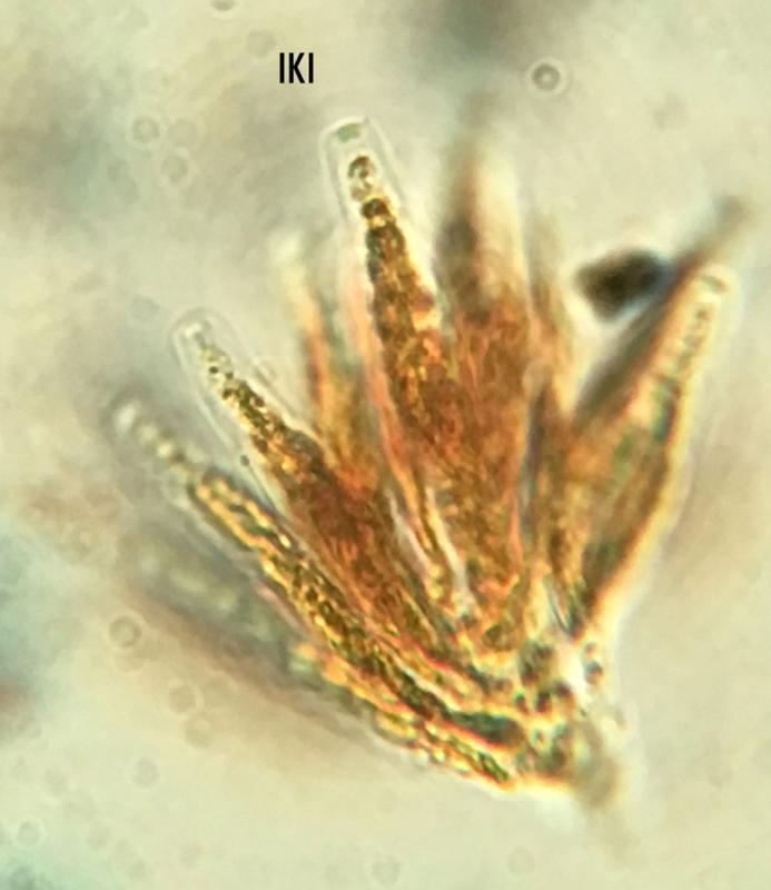 The spore bearing part of the asci is 33-42 x 4.5-5.5µm. The asci apex is, weakly IKI+. Spores are somewhat allantoid, 7-10 by 1-2µm.
