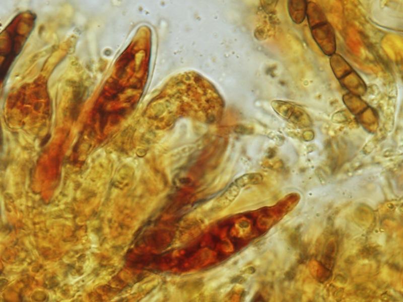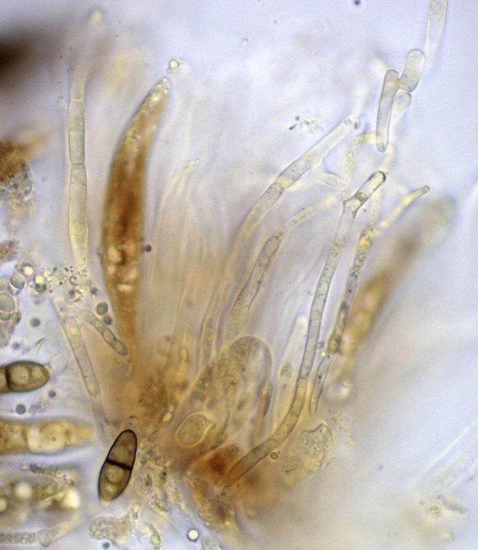-) Asci apparently bitunicate, reaction strongly to IKI, maybe with a slight amyloid reaction of the (inner?) wall