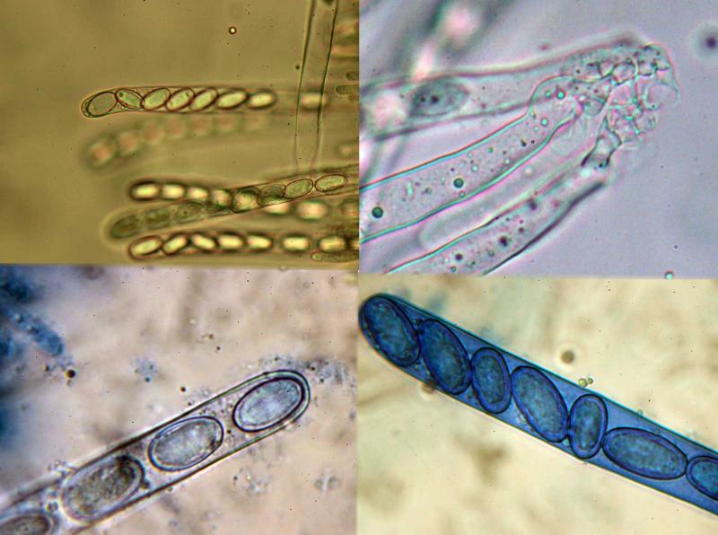 He visto solamente 56 esporas fuera de las ascas y me parece que el material esta ya en mal estado