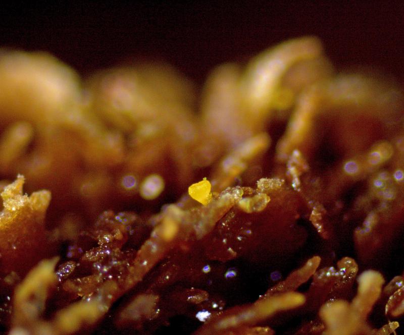 Sur mousse (tronc de Picea en décomposition/forêt vers le Doubs à 690m), apothécies 0.1-0.2 mm de diamètre, entièrement jaune citron, asques octosporés, 70 - 80 x 7 - 9.5 µm, IKI+ (faible) KOH+IKI+, crochets+, spores guttulées, 9 - 13 x 2.8 - 3.5 µm, lisses, hyalines, paraphyses non élargies au sommet. Merci d'avance pour vos avis.