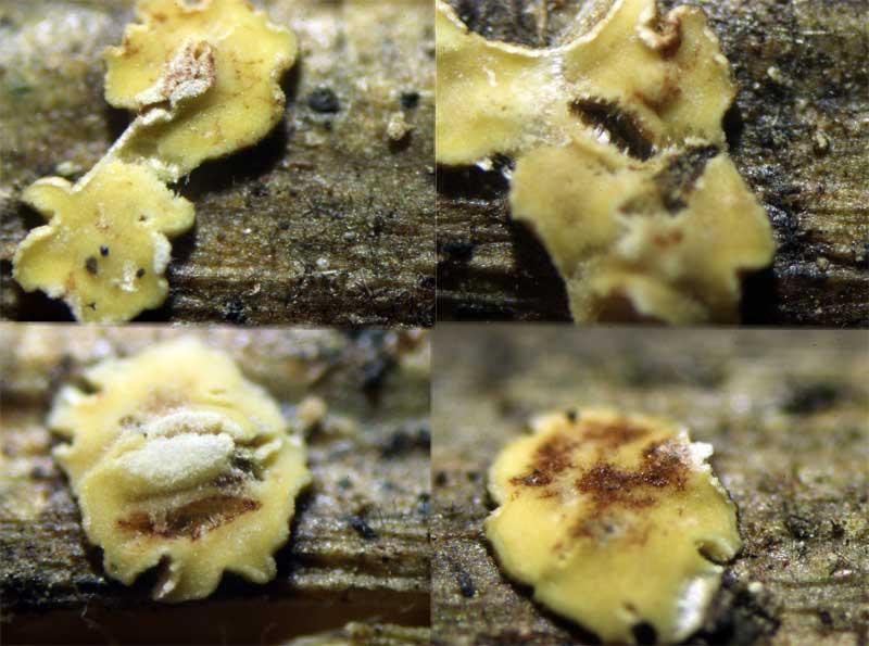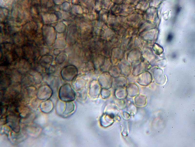 Gelblich und mit viel Öl in den Sporen sind M. ventosa (Sp. zu klein) und M. ramealis (Sp. zu schaml).