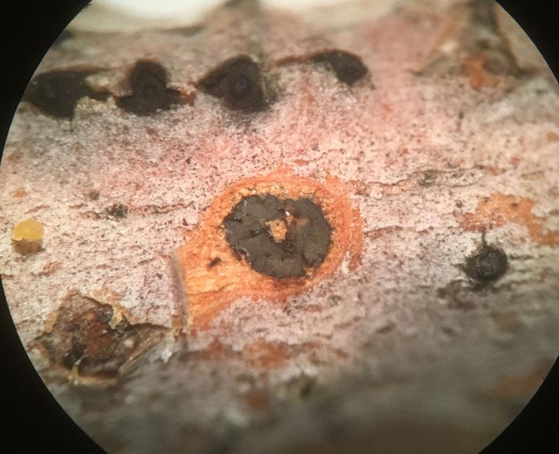 Hi Ethan,this is a Cytospora. Impossible to identify without sequences