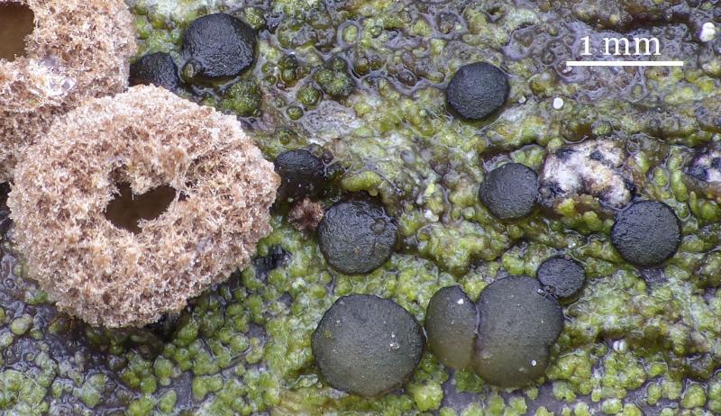 Apothécies jusqu'à 1 mm de diamètre.