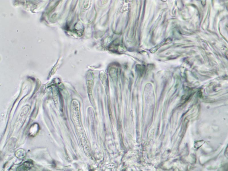 Asques : 30-45 x 6-7 µm, claviformes, courts, contenant des spores réunies en fasceaux.