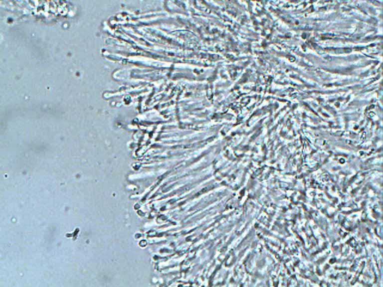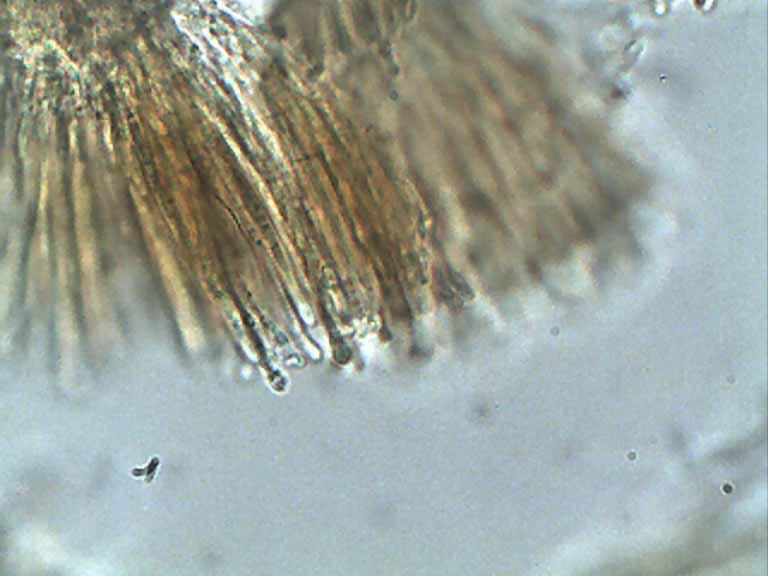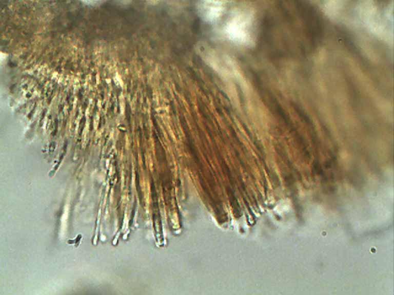 The hymenium is darker indeed in your sample. But under mic the hym. is hyaline.