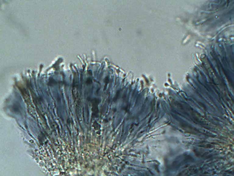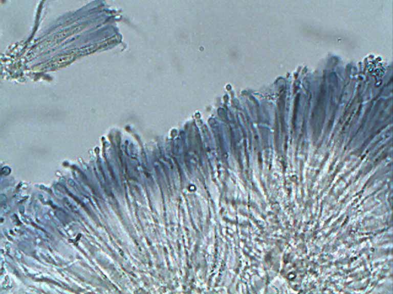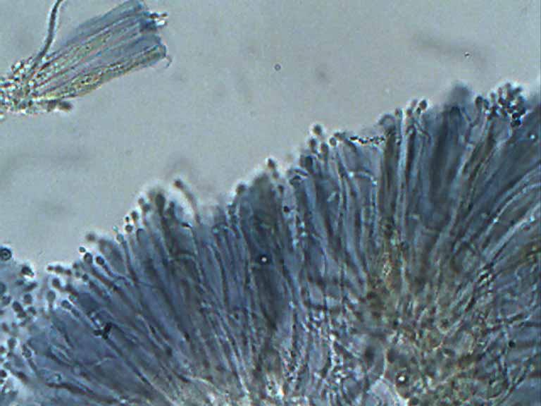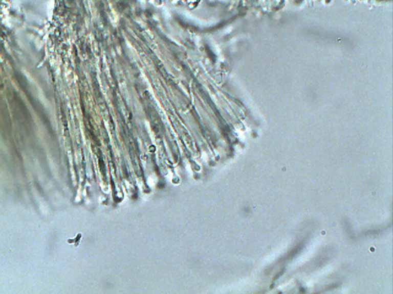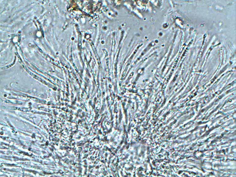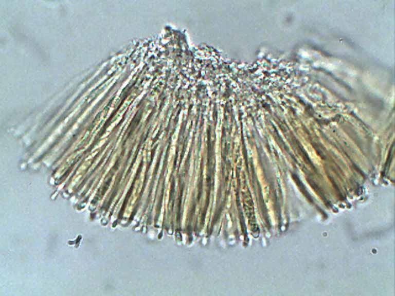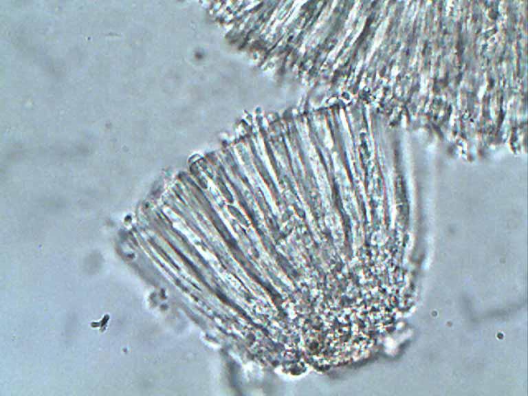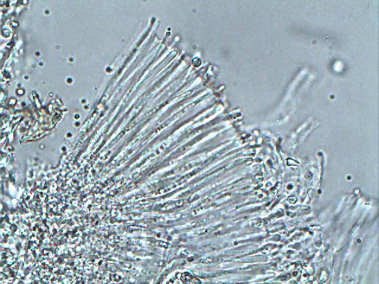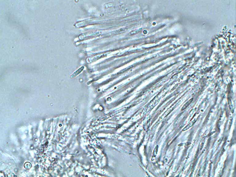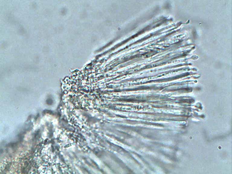 Parafisis rectas x 1--x 1,5 , apice x 2 , llenas de gotas lipidicas, un poco mas largas que las ascas x 60