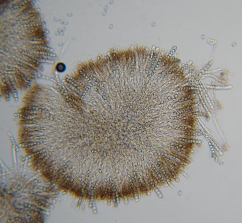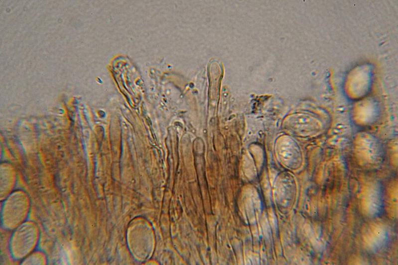 Paraphyses: 2 - 2,5 µ wide, branched, with brown pigment