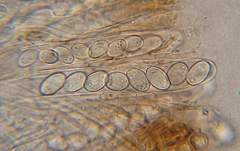Asci: 8 spored, 150 - 160 x 10 µ, no blue reaction with iodine