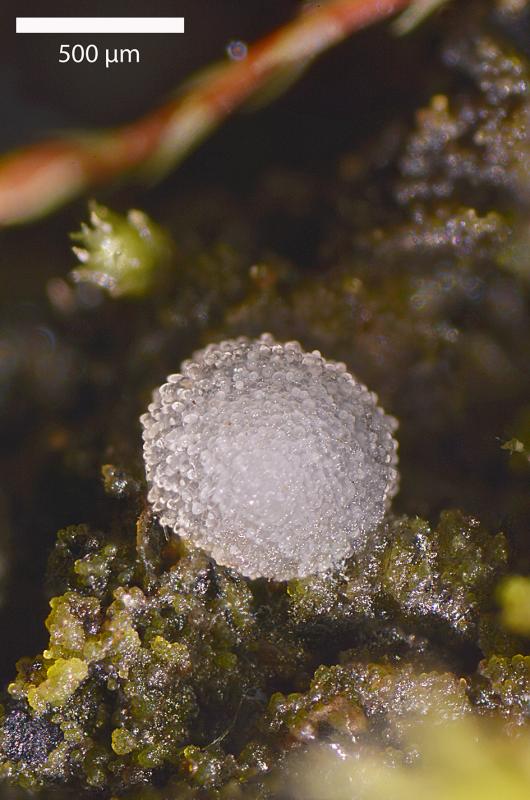 These minute, white, sessile, pruinose, hemisphaerical, neither applanate nor cupulate, 0.5-0.7 mm in diameter, grew among Ceratodon purpureus and algae on sandy burnt soil.