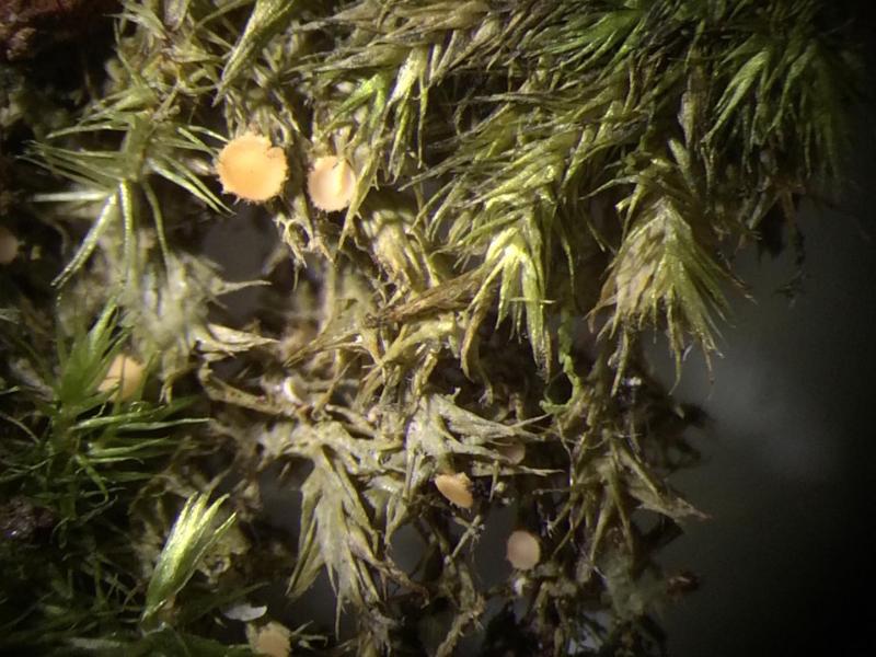 A fellow student working with mosses came up with this lovely Helotiales (?) among Acroporium sp. herbarium specimen from Vietnam.