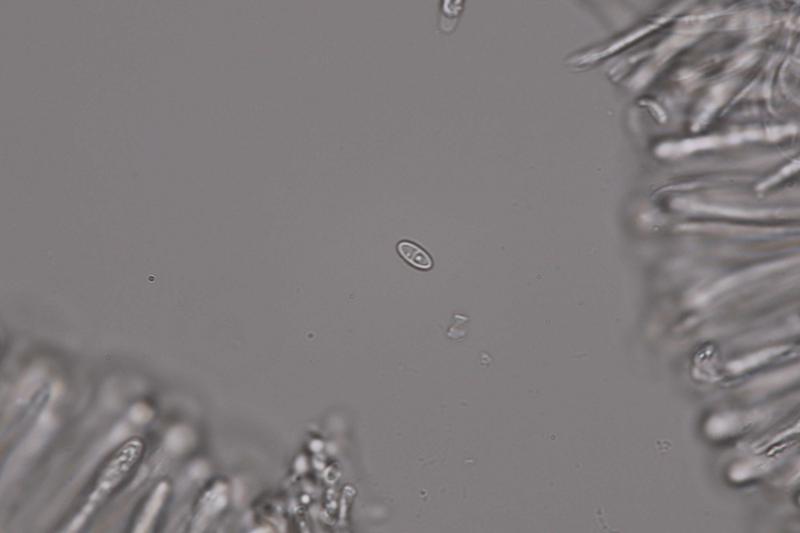 spores ca. 6 x 2,5; ascus tip strong blue in LUG and MLZ, shape should be noted (is there a name for it?); some structures resembling a crozier, but still not really sure; excipulum even sized textura globosa. Paraphyse contents turn golden yellow in LUG, in water contents hyaline. No other kind of paraphyses, the developing asci are not cylindrical, but tapering.