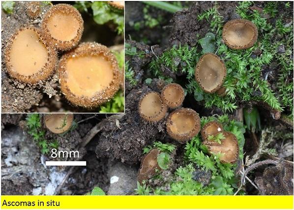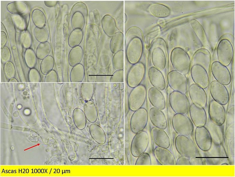 Adjunto fotos macro/micro de estas Tricharina sp, están recolectadas en un pequeño talud con plantas herbáceas y briófitos, en el sur de España.