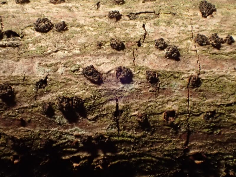 Growing on deciduous woos, probably Fraxinus excelsior. ca. 1 mm.