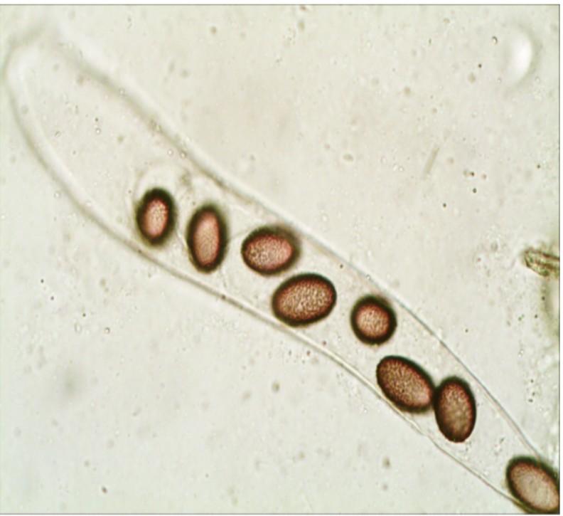 Ascospores uni- or irregularly bi-seriate, 27–28 × 16–17?m; episporium with rounded warts.