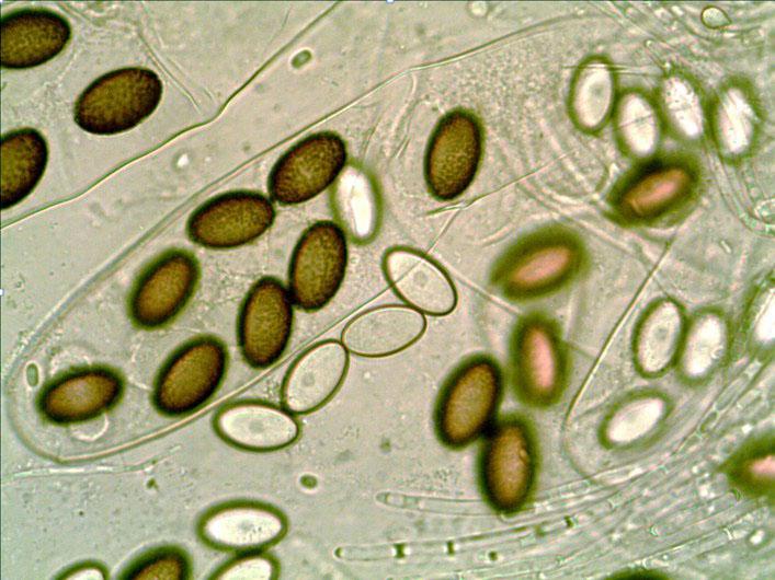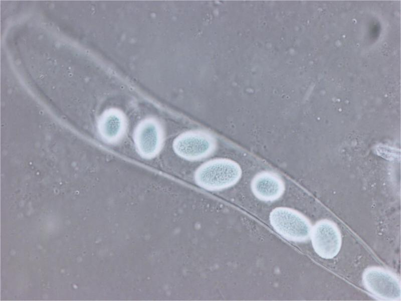 Asci clavate, 255–320 × 45–55 ?m, weakly amyloid.