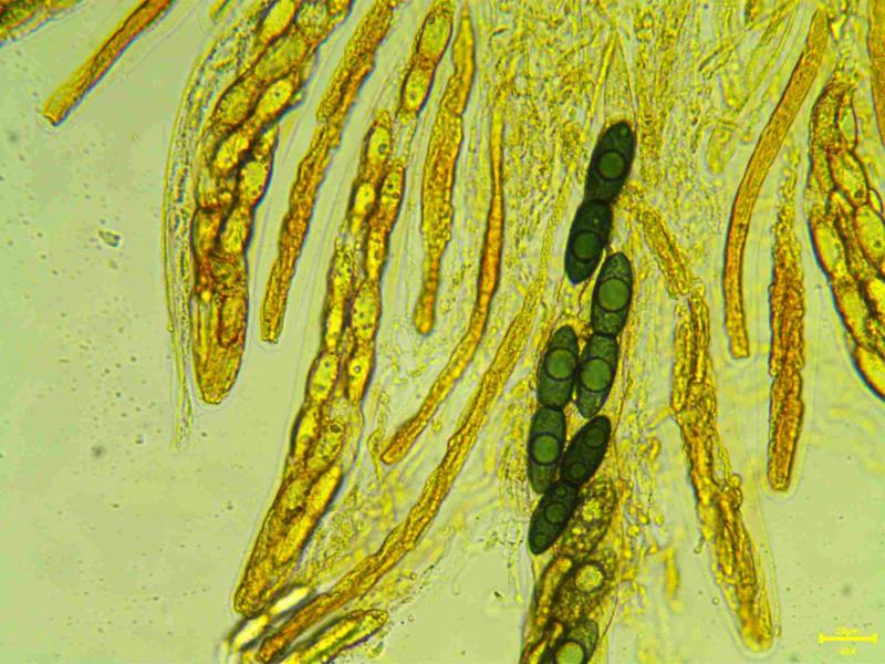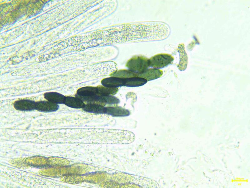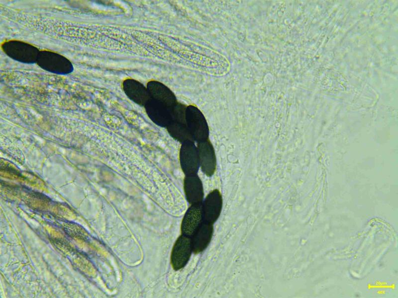IKI-. Ascospores noires fortement rétrécies au centre (septa) 56.1 x 15.1 Qe 3.7.