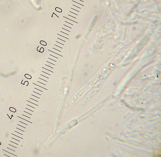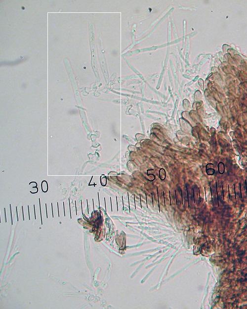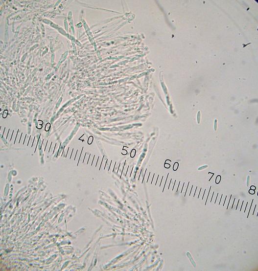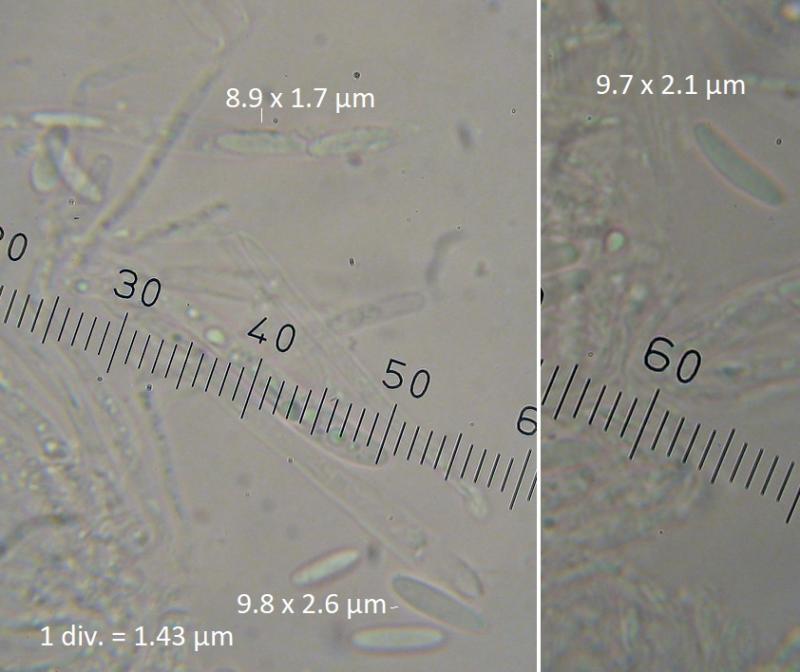 Spores: 9.7-9.8 x 2.1-2.6 µm