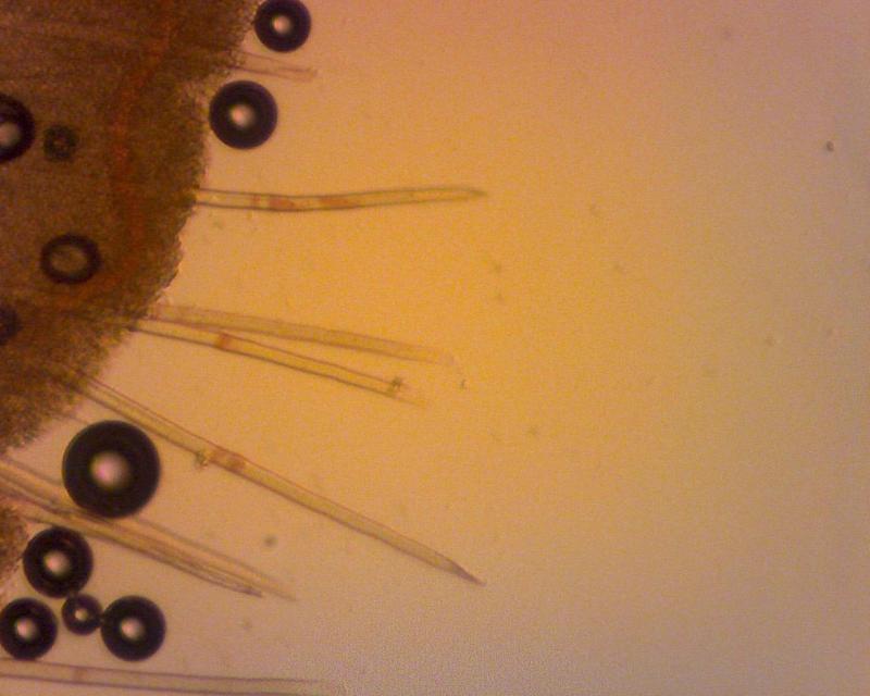 I see tiny little "spores" and long hairs, but not ascus.