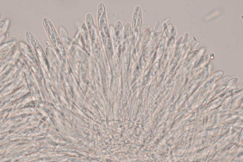 Paráfisis cilíndrica, no engrosada en el ápice, con pocas y pequeñas VBs.