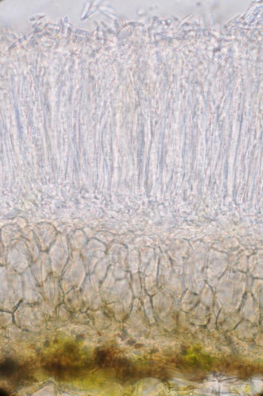 En una reunión reciente, nos encontramos con que crecemos sobre las hojas de las plantas de Cruciata laevis (una Rubiaceae) es una posible pseudopeziza, pero no encuentro con nadie que encaje con esto. Al principio pensé en un Coccomyces. La característica más particular es que los asci son hemiamiloides. Todas las medidas en agua y en directo.