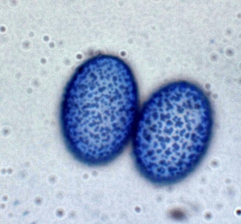 The spores were on av 20-15 with mostly individual warts but with some coalescing. The outer surface did not loosen when heated in LCB.