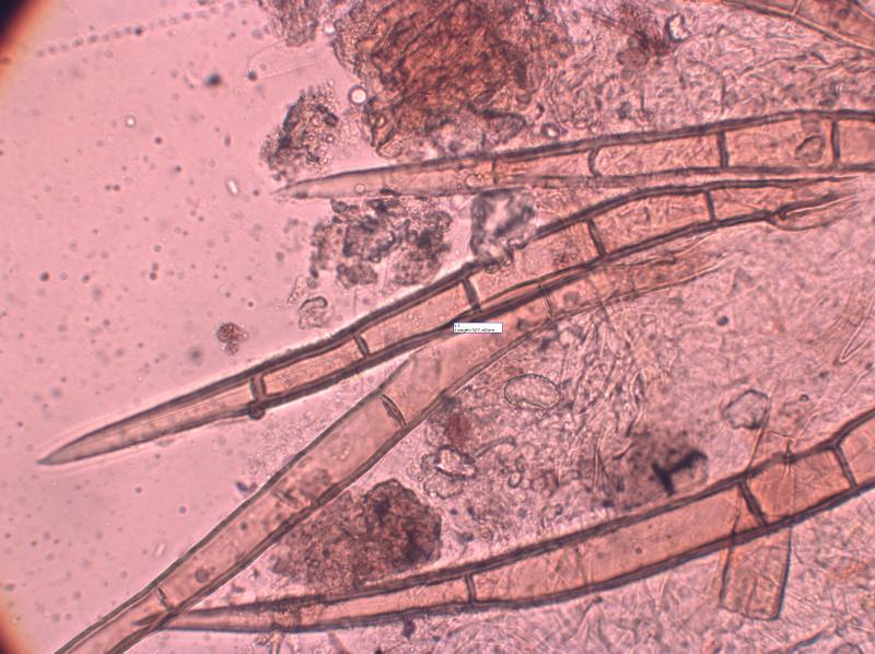 long and had 3-6 septa and had a simple or bi-furcate base.