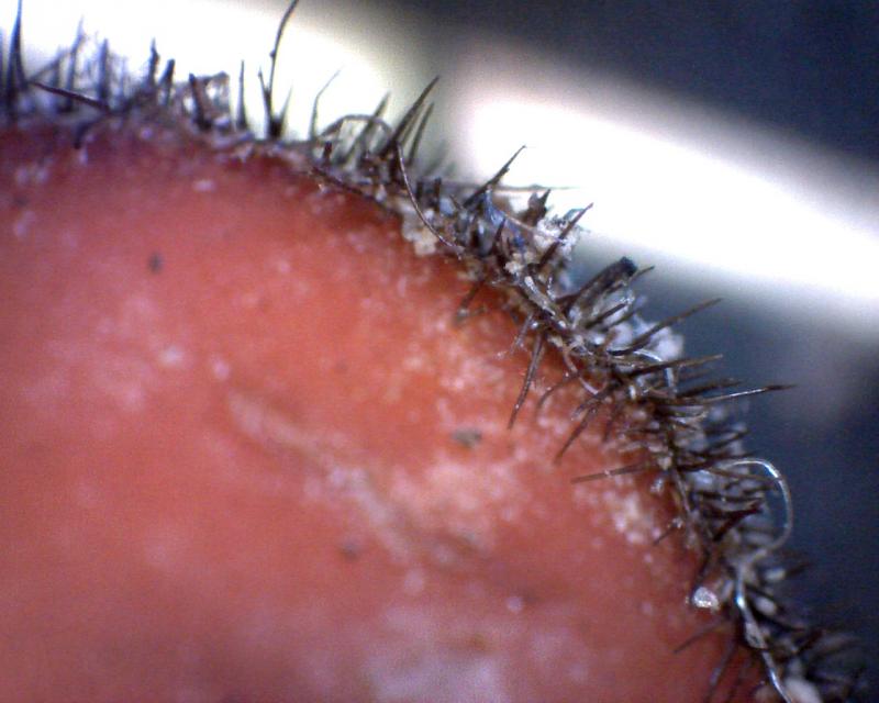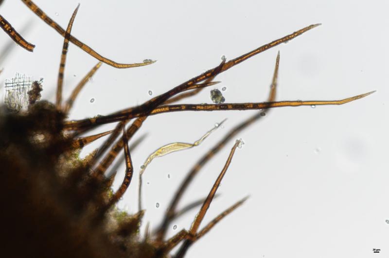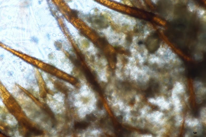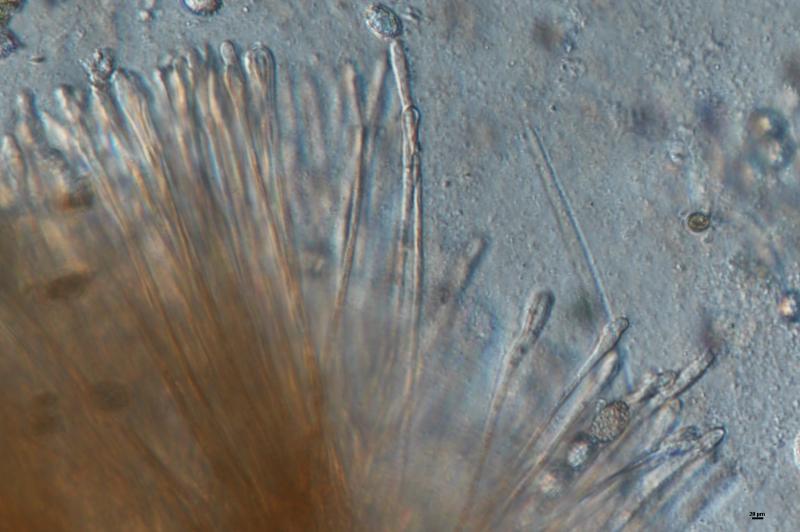 Hairs on back of apothecium short, ~ 300, 270, 230, 333 um.