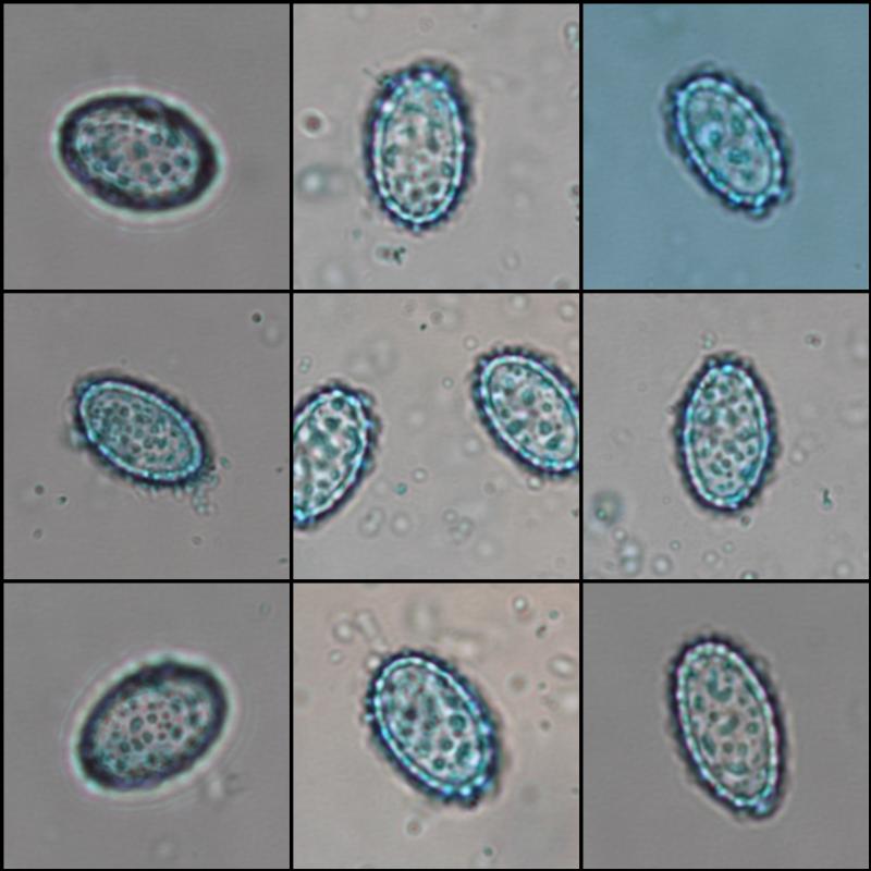 Spore measure in H20 from ejected ascospores:(14.6) 17.2 - 18.5 (20.1) × (10.9) 11.1 - 11.9 (12.3) µm; Q = (1.3) 1.5 - 1.7 (1.8) ; N = 15; Me = 18 × 11.5 µm ; Qe = 1.6