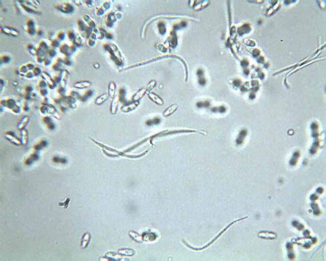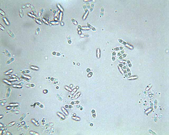 Hola, he recogido este Hongo en la base de Glycyrrhiza glabra (regaliz de palo), parece que se ven dos tipos de conidios, pero no he visto conidioforos , despues de ralizar varias preparaciones .Mide el mayor 1mm x 0,6 mm