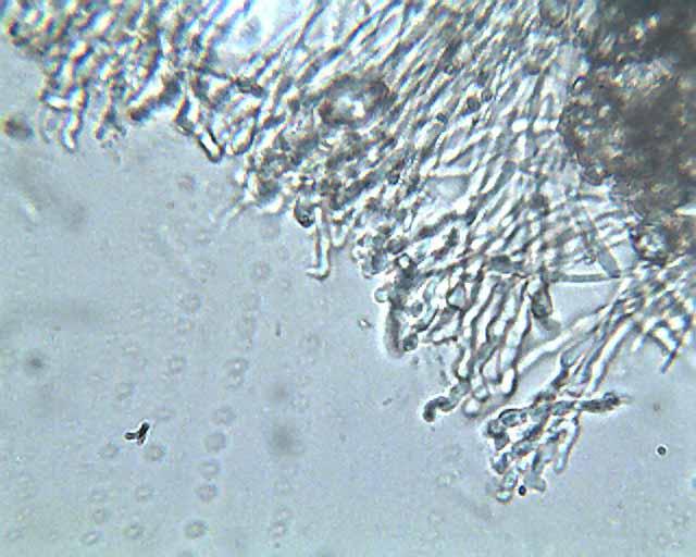 He mirado el Articulo con las claves de Mycotaxon, pero no llego a nada con ellas, hay cinco especies que entrarian en medidas pero luego no hay descripcion de ellas