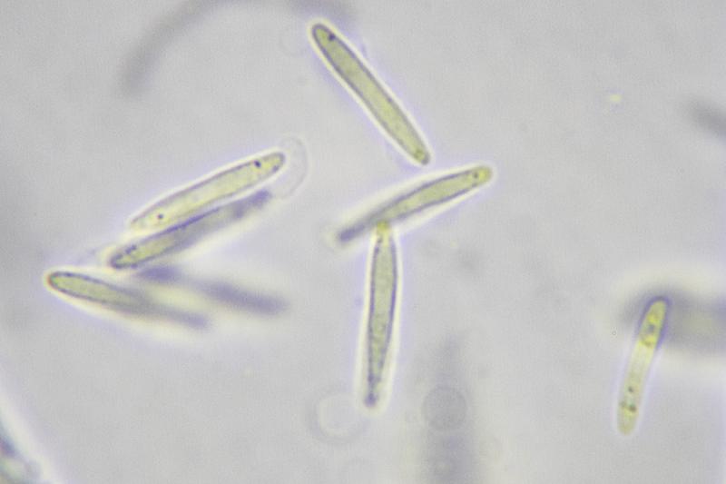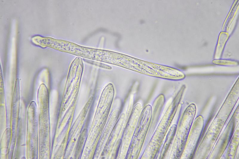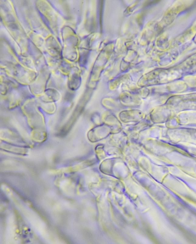 Apical ring weakly red in lugols, soon tunrning greyish.