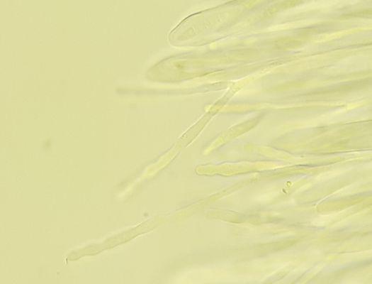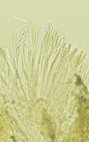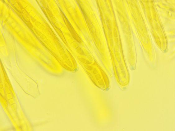 Hello, I am new here and also a beginner. So I know very very little, but am eager to learn. Last Sunday I was near a pool on loam soil. On a little piece of leaf I saw these, I will decribe what I could find (some things I couldn't find due to lack of experience). Ectal ? excipulum textura oblita/porrecta, asci 120-130 µm x 11-13 µm. Paraphyses a bit longer, filled with VB's (they disappeared rapidly with KOH), curvy and branched (not all), about 2 µm broad. Spores 3 times septated (already in the asci), 25-32 µm x 3,5-4,5 µm. Could this be Crocicreas culmicola and is that the current name? And feel free please to tell me if I didn't do something or did it wrong. Thank you!