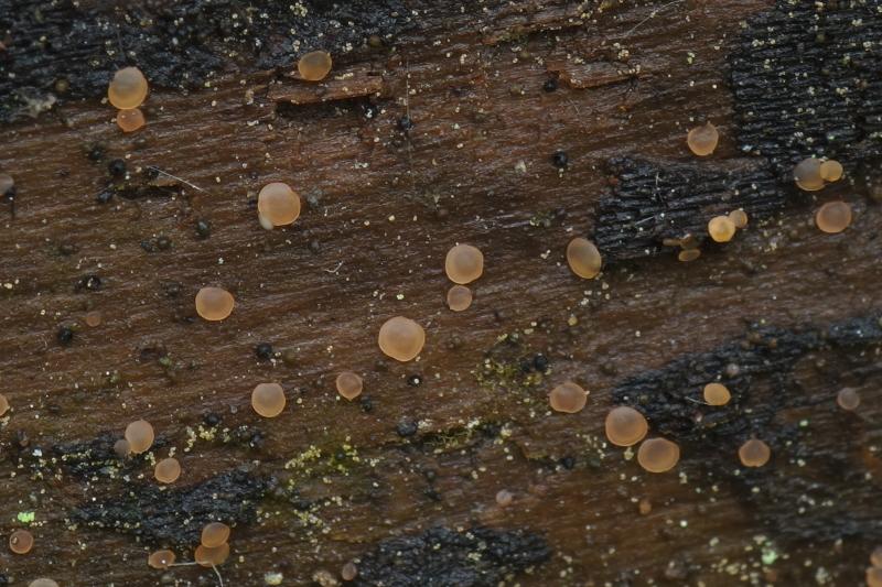 I happened to stumble on an Orbilia once again. These were growing on a fallen trunk of Betula in a moist, swampy place.