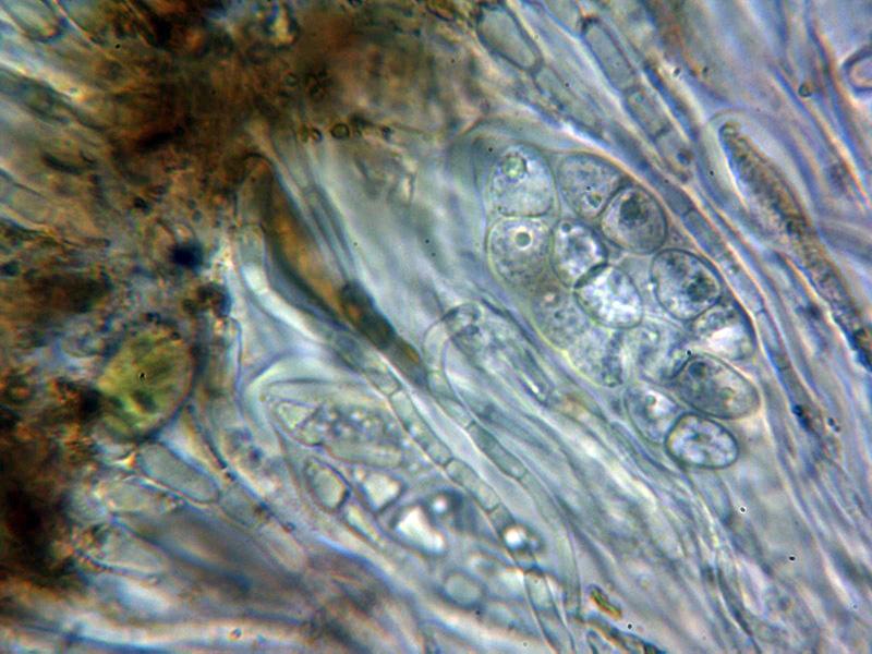Gracias Zacarías, pues parece encajar bastante bien con mi propuesta, lo único que no encaja del todo son las medidas esporales, algo por encima en mi caso, las medidas de las ascas según bibliografía de 50-80 X 20-25, encaja perfectamente con 52-80 X 18-25 de mi estudio. El comportamiento virando a púrpura con KOH también encaja.