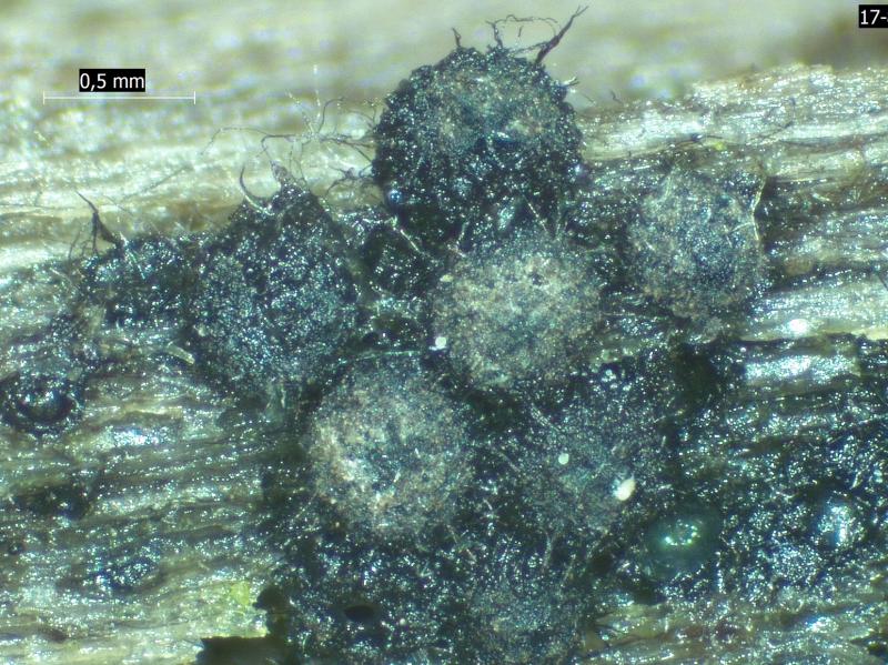 Is this collection within the normal range of variation of Lasiosphaeris hirsuta? The collection shows some features of Cercophora ambigua (as described bij Bell & Mahoney 2016) but the inflated spore parts do not colour brown.
