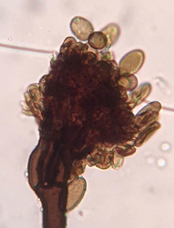 A friend found this anamorph in Staten Island NYC and very kindly gave it to me for further research. It was growing on grass, possibly Agrostis sp. I'm reasonably sure it's Periconia. I ran it through the key on p. 345 of Ellis (Dematiaceous Hyphomycetes) and the result was P. sacchari. Conidia are brown, minutely warted and measure 14-19 x 8-11µm. The range (Brazil, Ghana, Puerto Rico, Sierra Leone) and host (Saccharum) given in Ellis aren't a perfect match. Perhaps someone can point me in the right direction?