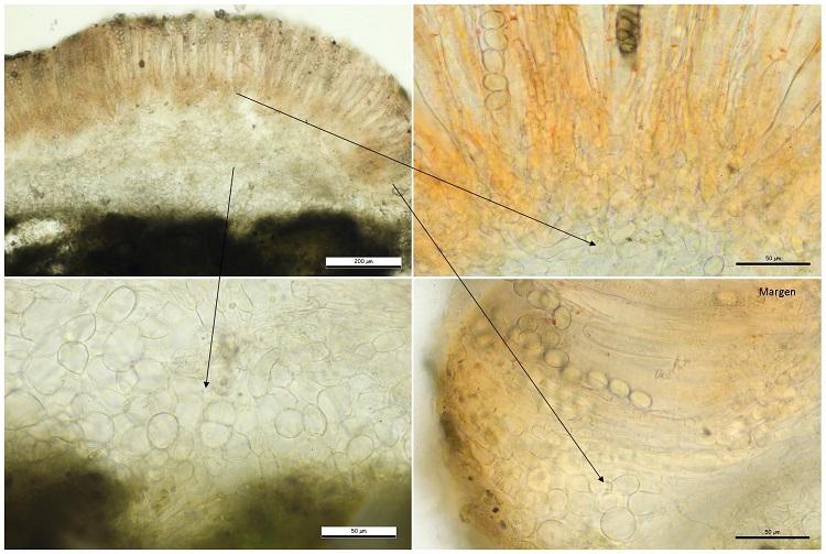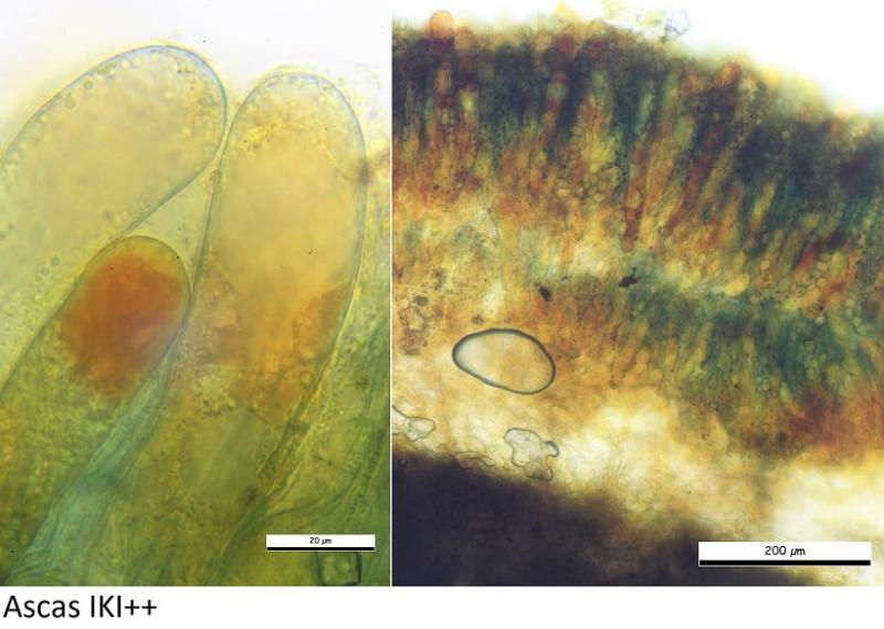 Probablemente pertenece algún género de la tribu Theleboleae por la reacción amiloides en las ascas, de ahí mi tentativa de nombrarlo Iodophanus sp-