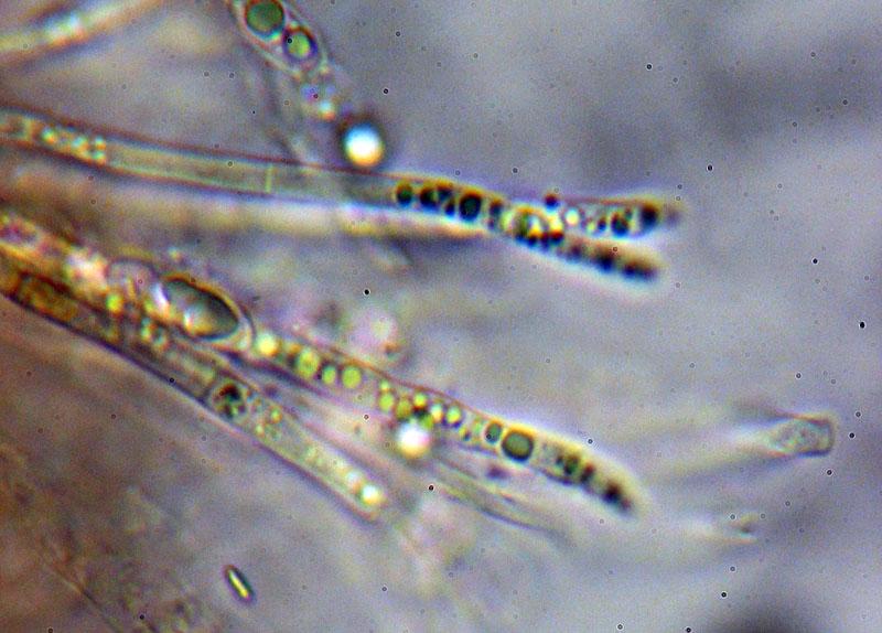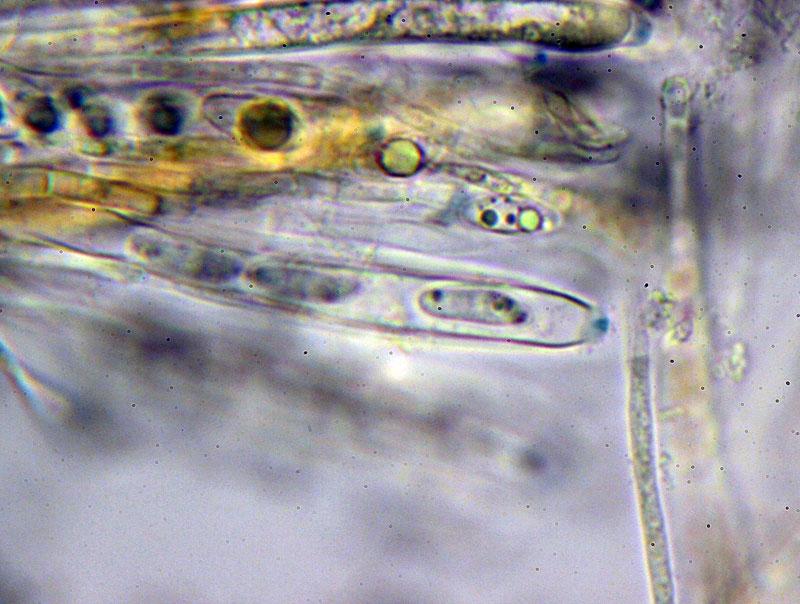 Living asci would be good, it seems that the fungus is mainly overmature. The spore contents might have altered. Ascus base with croziers? perhaps more photos of the blue apical ring?