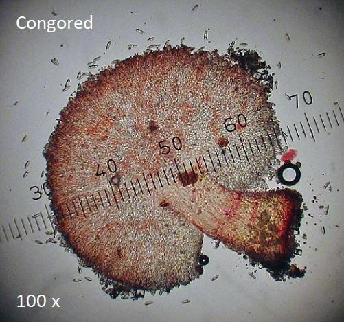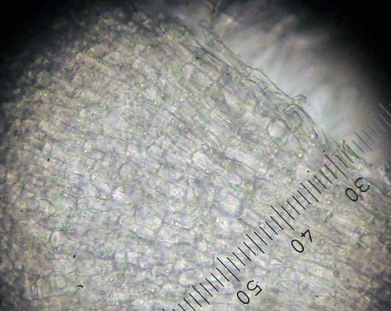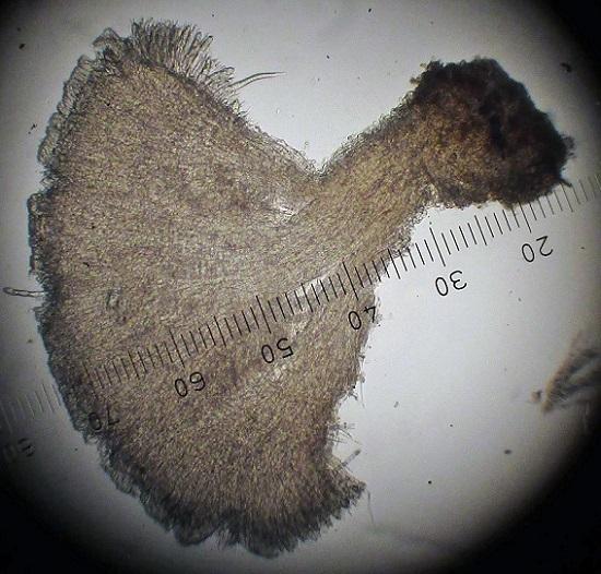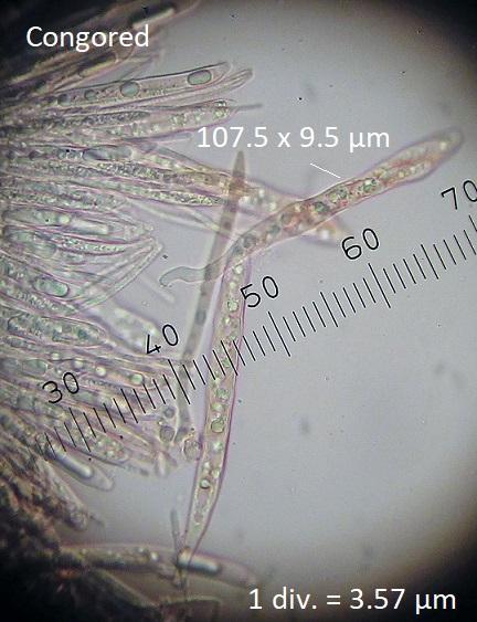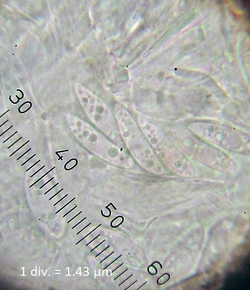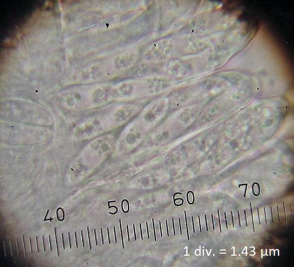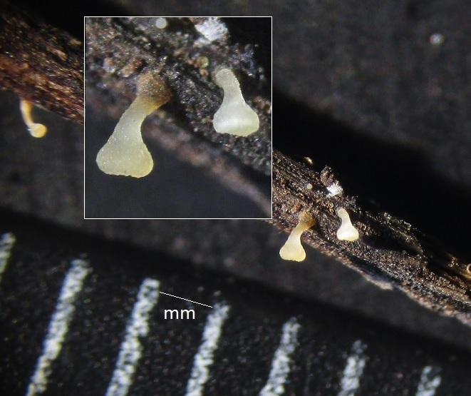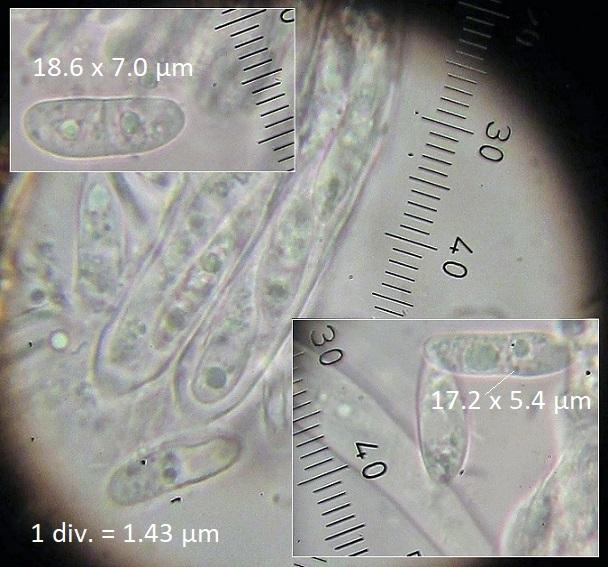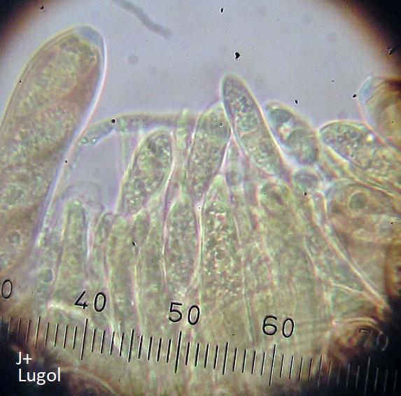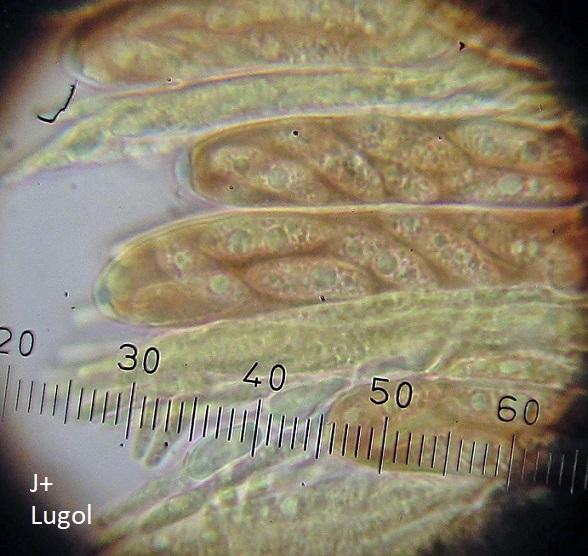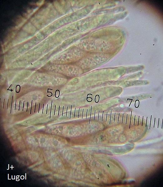 Apothecia 0.5 mm diameter, asci without croziers, J+