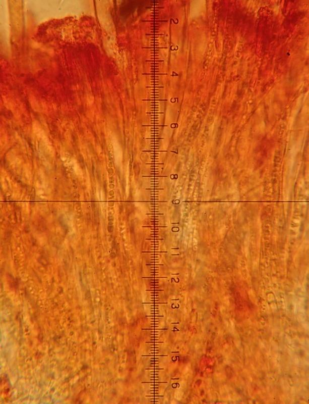 Paraphyses with small guttules, filiforms, 2-3um wide.