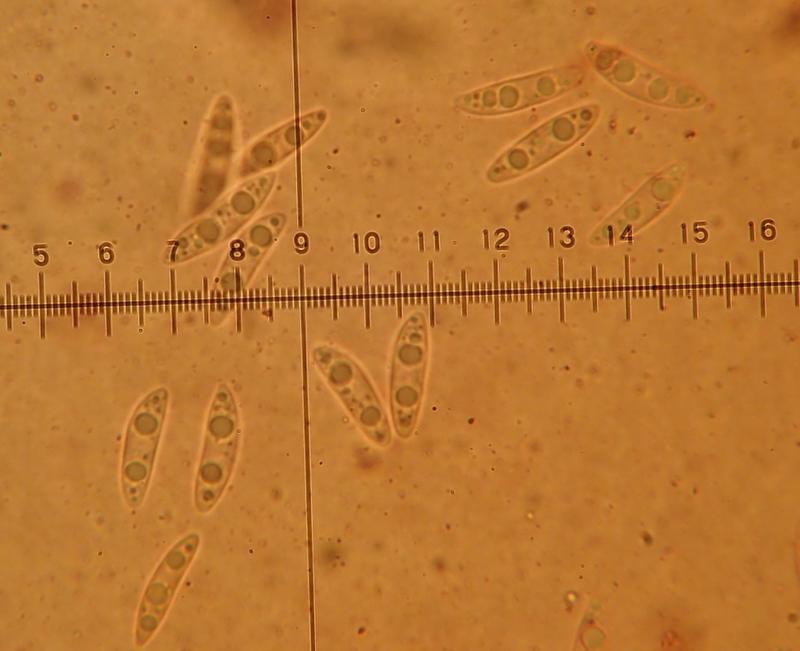 Spores fusiform 18,3-20,7x4,3-5,3, Q=3,8-4,7
