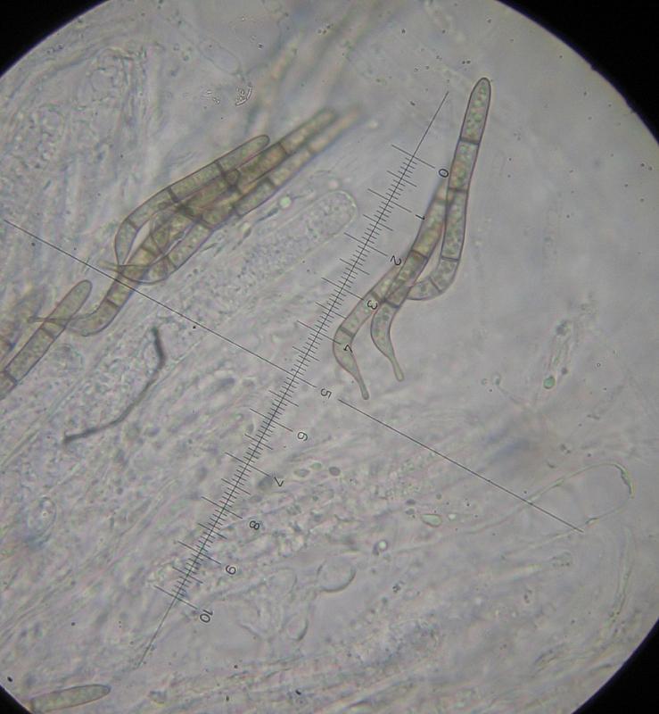 Ascospores: 45-53 x 4µm, brown, 3 x septate