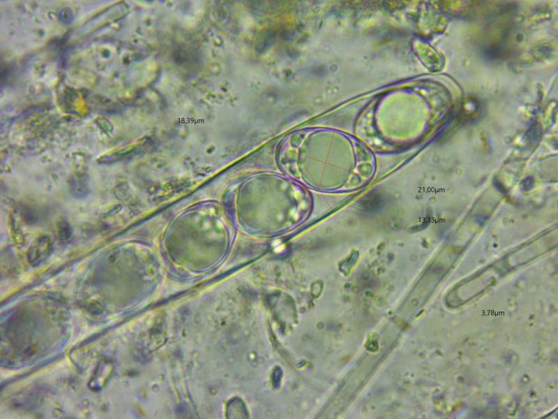 The spores (there were only quite few ripe asci) are about 18-21/12-14 µm.