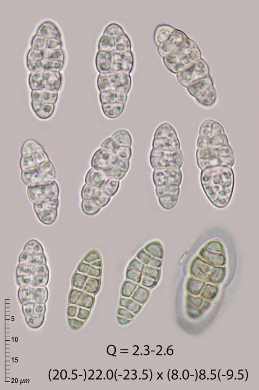 Hi!Found i Japan on bark of Abies sp. Spores 35-4