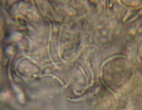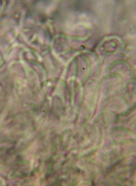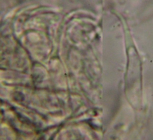 Hairs uncinate, glassy, IKI-, CR-, KOH- (without heating).
