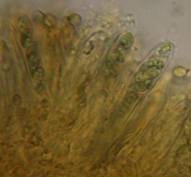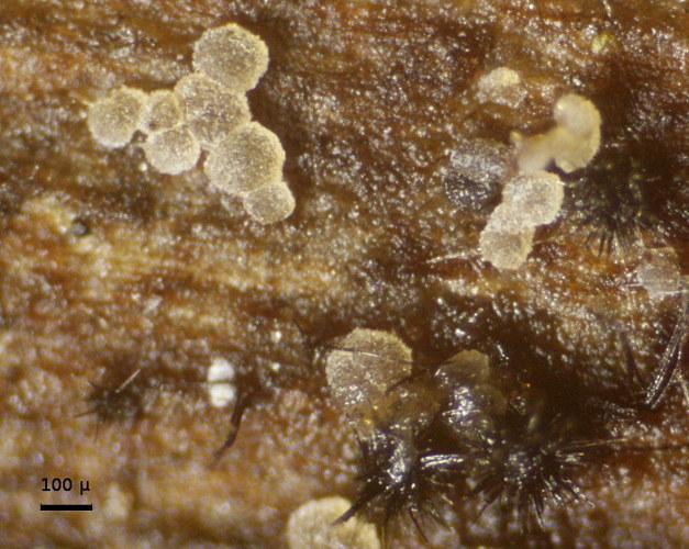 Apothecia 100-150(180) um, yellowish, on hardwood.