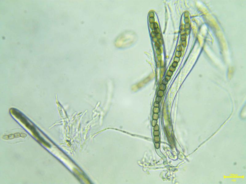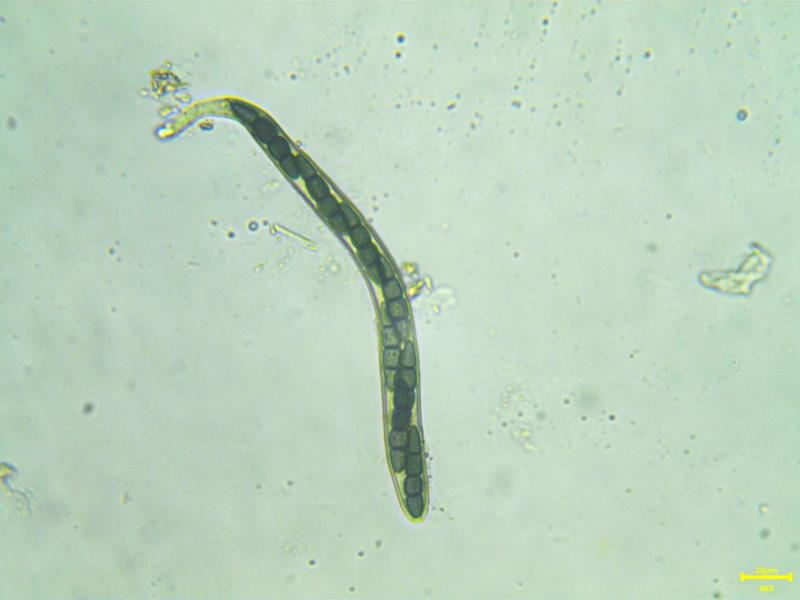 Bonjour à tous,Taxon totalement immergé trouvé sur crotte de lapin. Asques octosporés, unisériés mais bi-sériés à l'apex 213-228x14.2-15.3µm. Ascospores à 4 celulles verdatres 39.9x9.6µm (minimum 33.2x7.9µ). Ascospores libres entourées d'un gélin.
