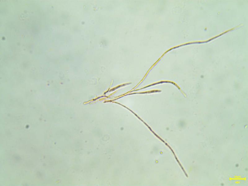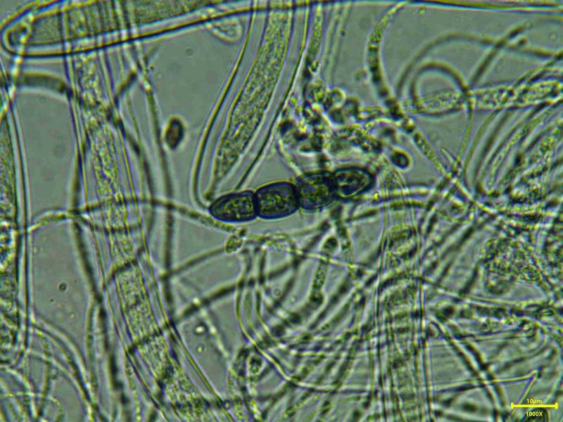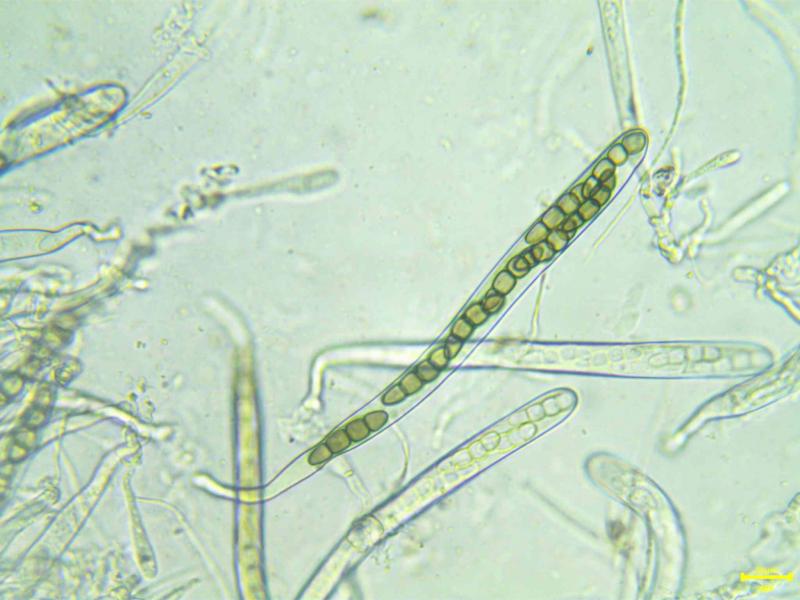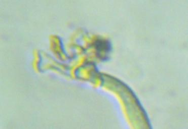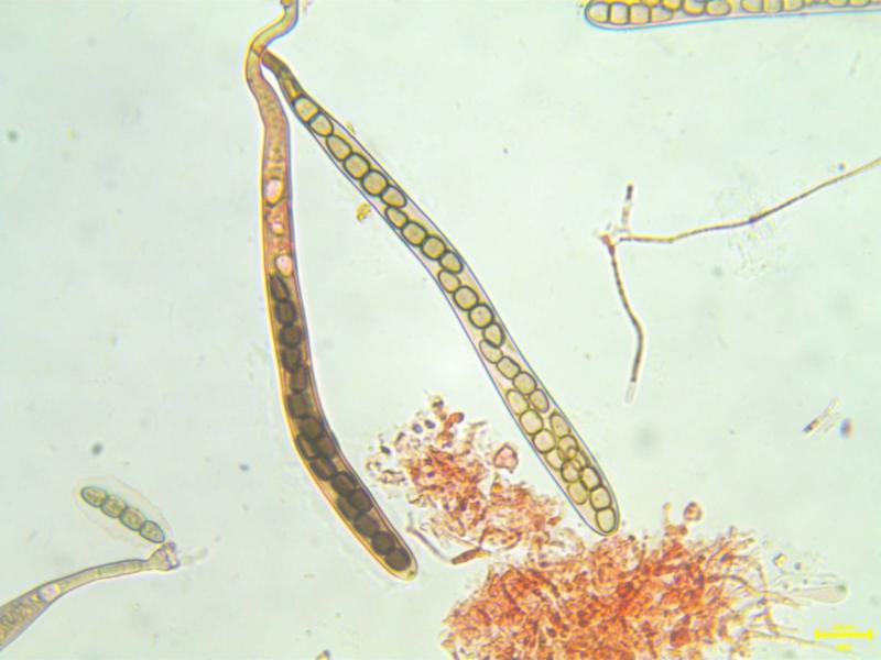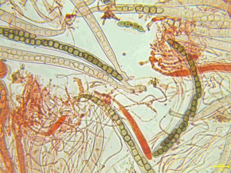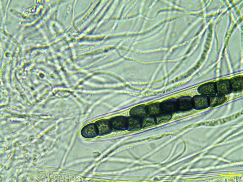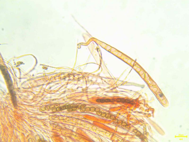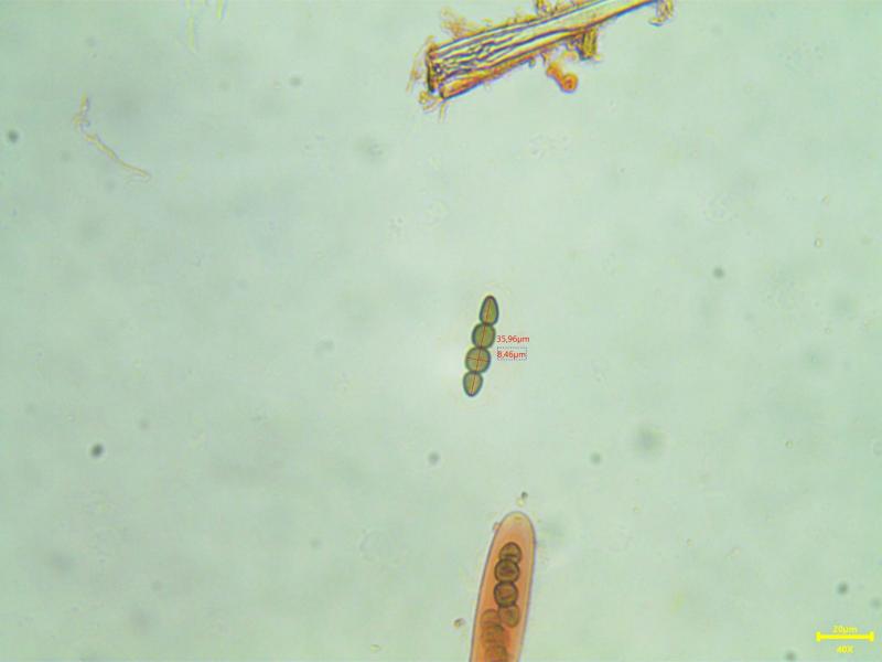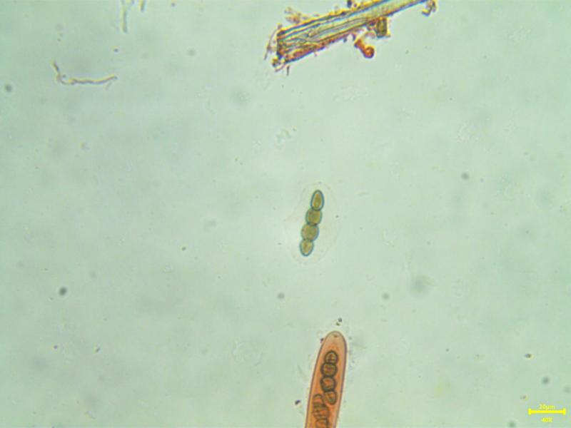 Je met de nouvelles photos de ce que j'ai pu récupèrer du peu de matériel restant. Pas de fentes germinatives visibles mais je n'ai plus rien a observer. Le taxon le plus proche serait S.Pilosa le pied d'asque convient ainsi que la dimension de l'asque mais pas des ascospores.